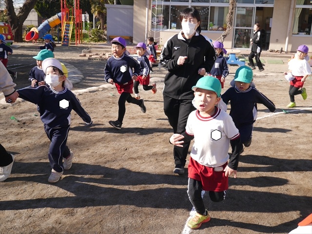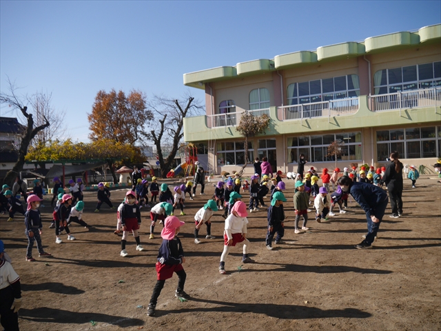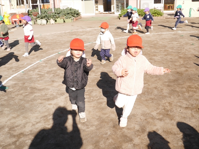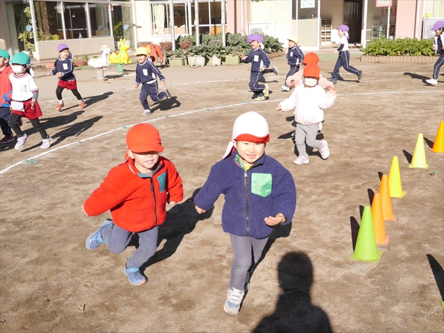 今日も寒かったですが、陽だまりは暖かいので、「マラソン」には丁度いい天候でした。子どもたちは、音楽が始まるとみんな元気いっぱい「マラソン」を頑張り、心地よい汗をかきました!みんなインフルエンザなんか吹き飛ばしちゃえ~!(^_^)v ヘ(^o^)/
