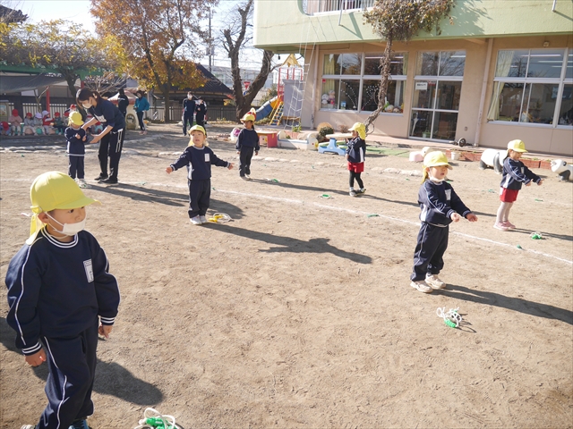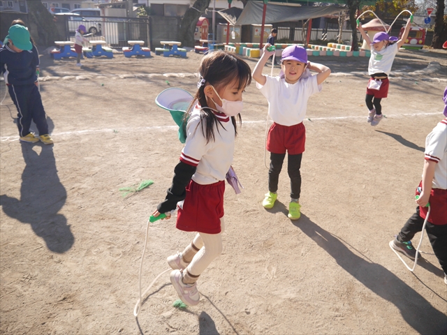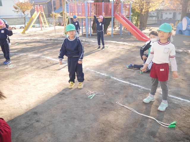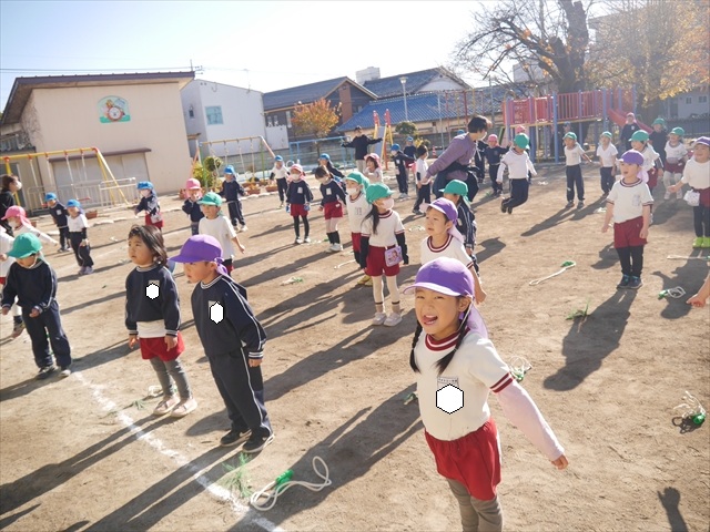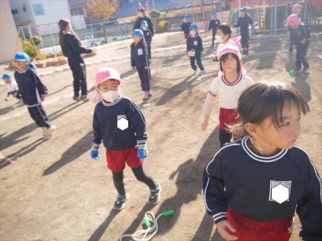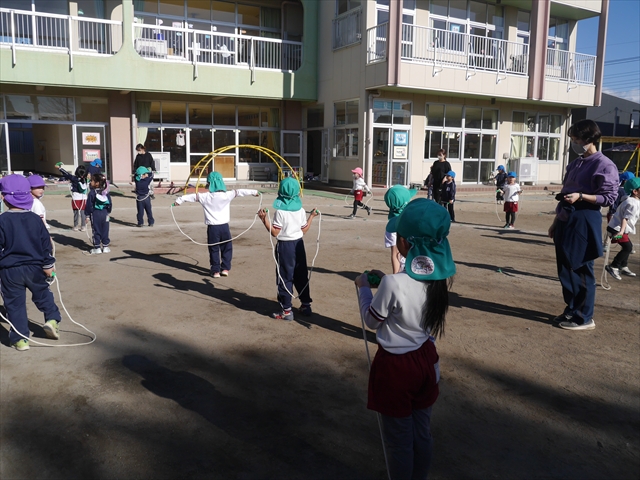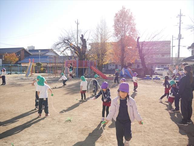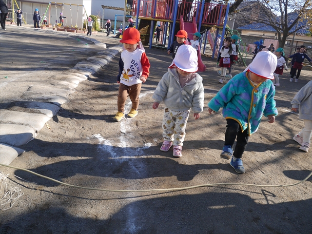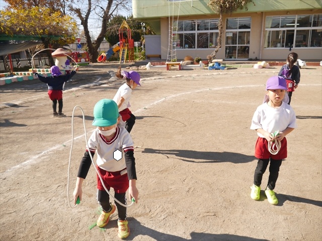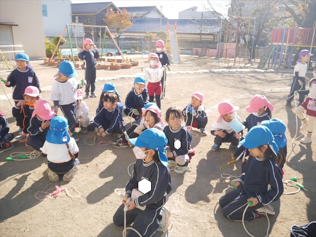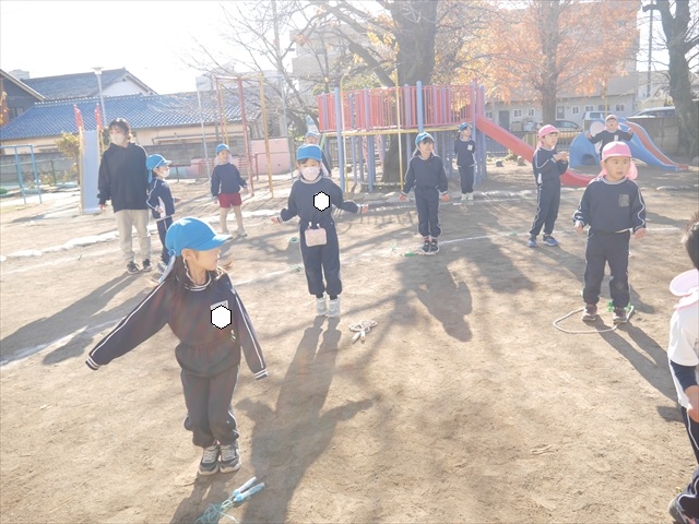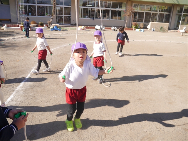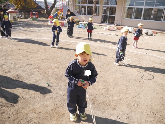 特に年長さん、年中さんは2月6日(金)に今年度の「なわとび大会(前跳びを連続で一番回数多く跳んだ子が優勝)」がありますので、優勝カップ・賞状獲得を目指して頑張ってほしいと思います。(^_^)v