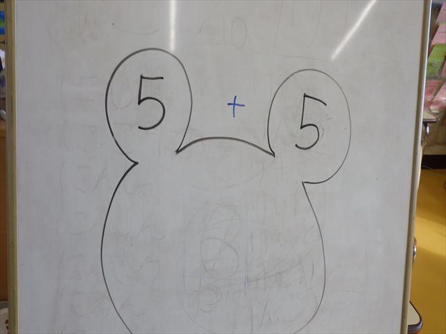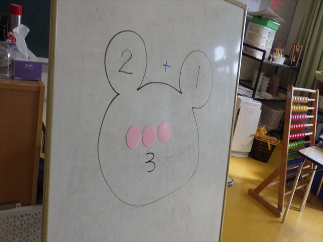 午後は、算数の時間として120まで数を数えたあと、ミッキー計算をしました。指を使ったり頭で考えたりしながら足し算をしていきました。
