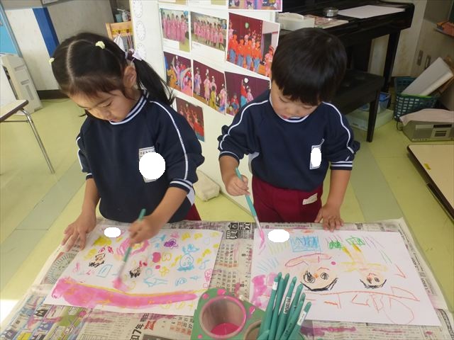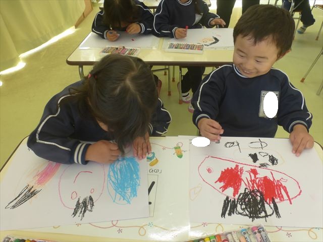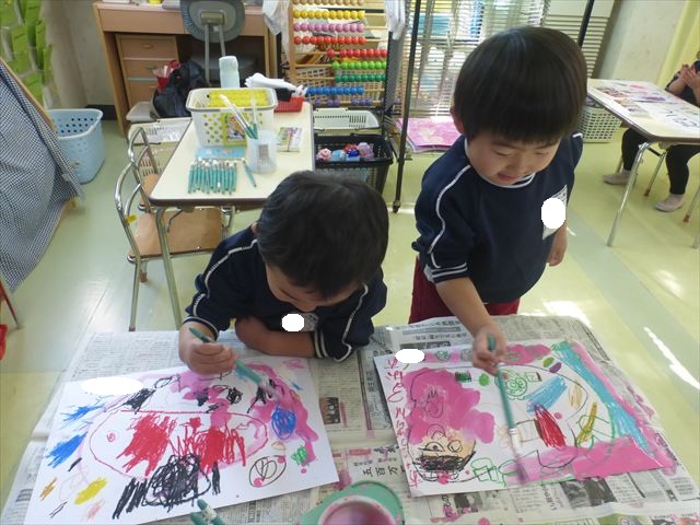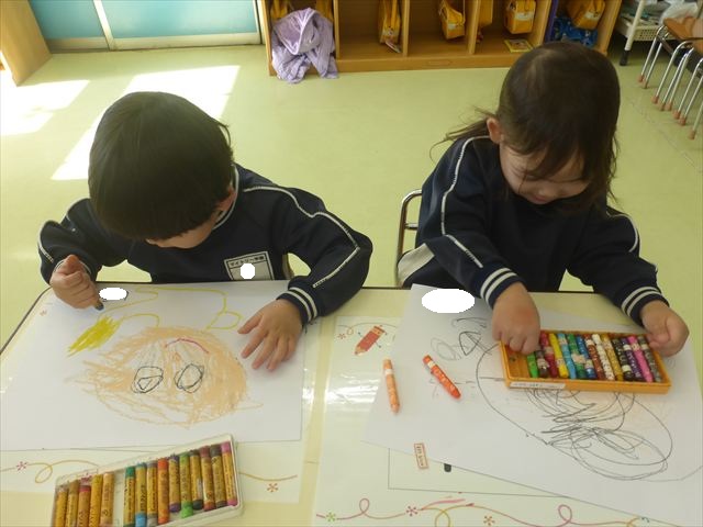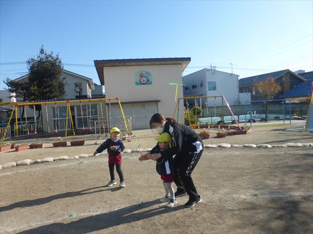 今日は竹とんぼをやってみました。コツを掴むと上手に飛ばす事ができみんなで楽しむことができました。飛ばせた時のわぁ〜という表情かわいかったです\(^o^)/その後は発表会の絵を描きました。衣装の写真を見ながら自分なりに表現をして絵を描くことができました(^o^)午後はハンガーにジャンパーをかける練習をしました。ご家庭でも時間のある時に見ていただけるとありがたいです。