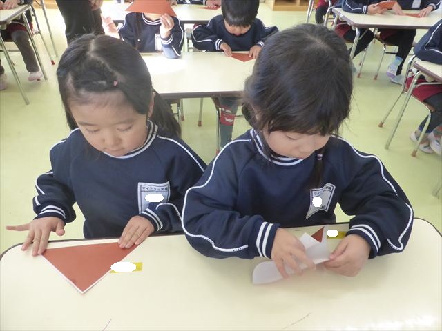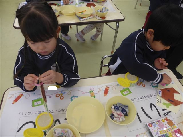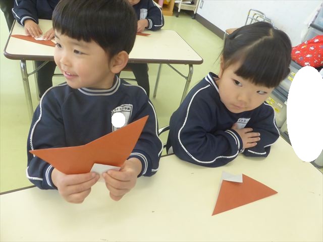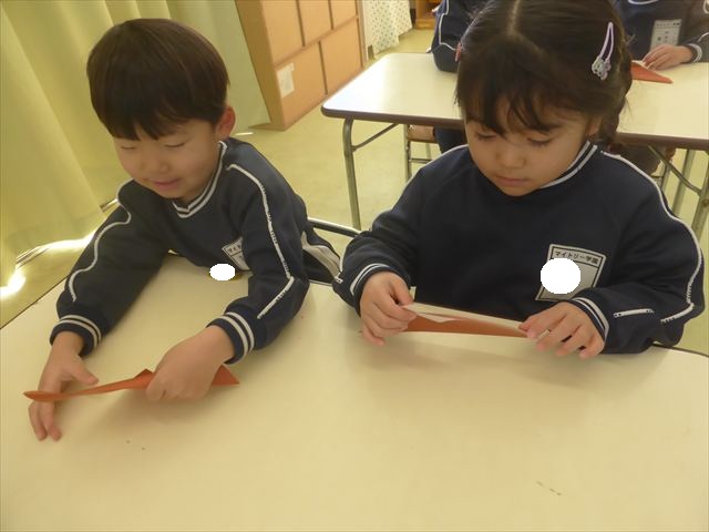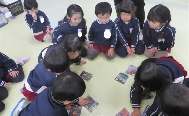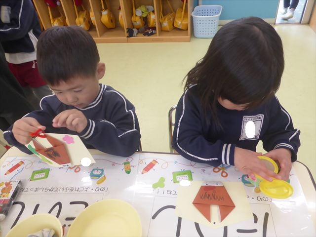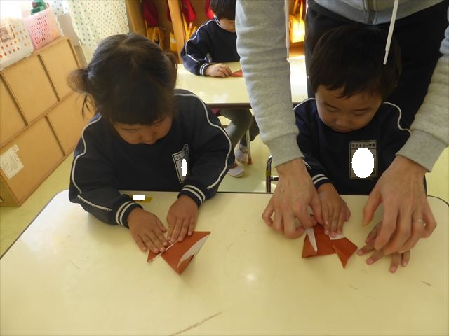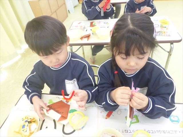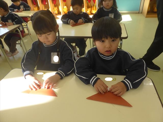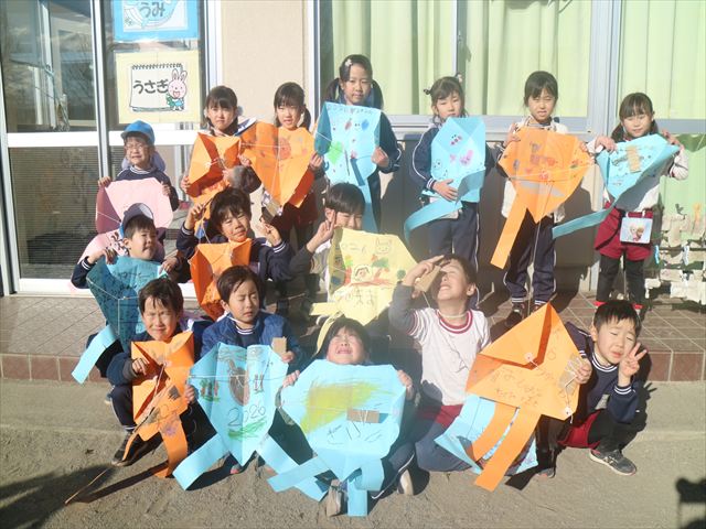 今日は、造形活動の時間として「絵馬」を作りました。まず、折り紙で「うま」を折りました(^O^)苦手に思う子もいますが、お友だちや先生たちと一緒に折って完成させることができました。最後は台紙にうまと飾りを貼りました(^O^)午後は、道徳の時間として絵本の読み聞かせをしました。「手洗いの大切さ」の絵本と「物の大切さ」の絵本を読んでみんなで考えました。その後は、上毛かるたをしました。カルタをみて全部言える子もいてびっくり!!ぜひご家庭で一緒に上毛かるたに触れていただけると子どもたちも更に意欲的になれるのかなと思います(