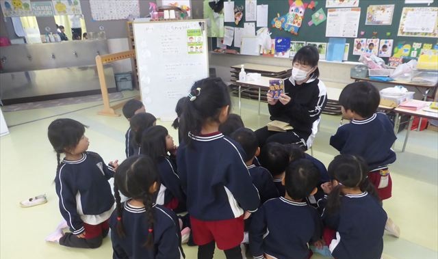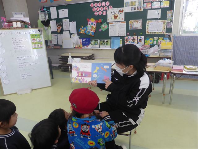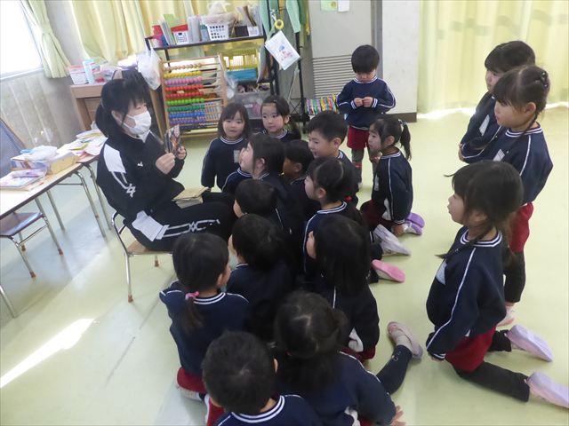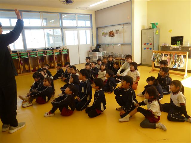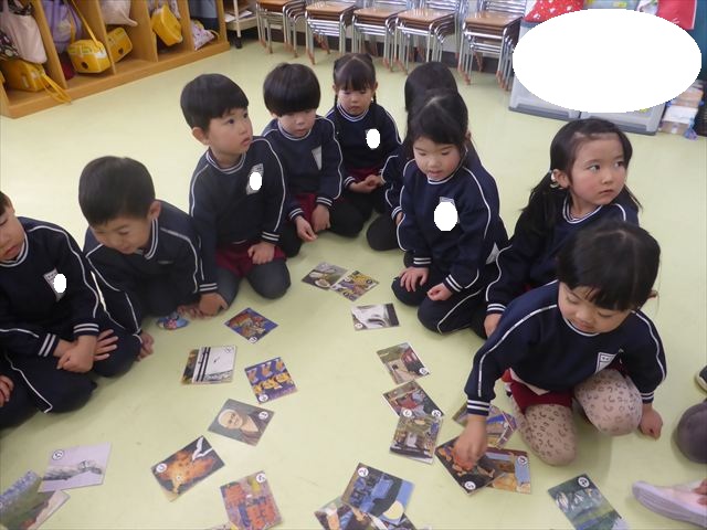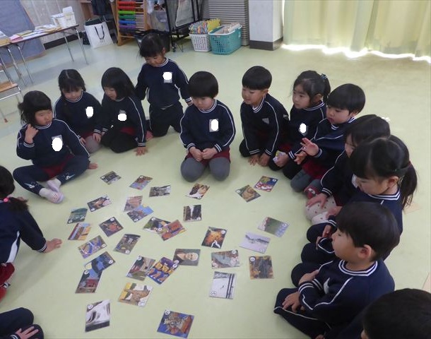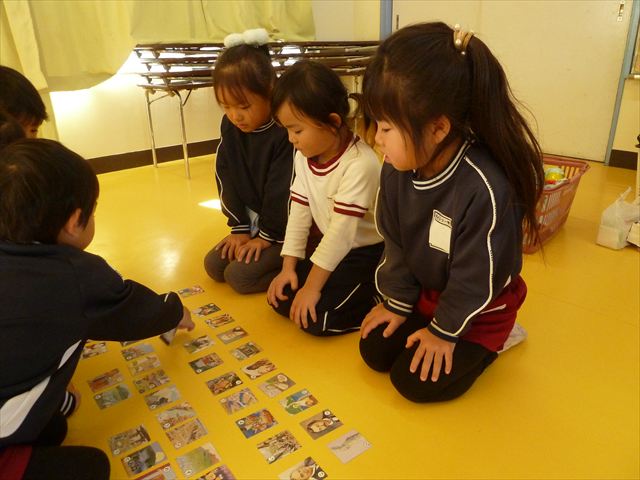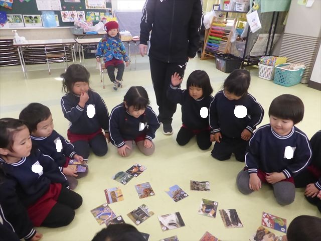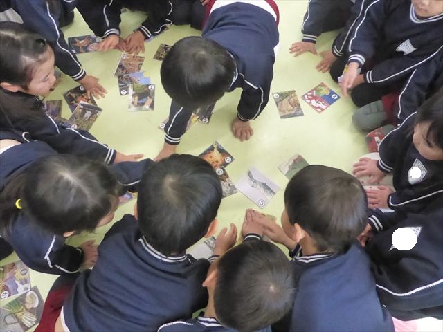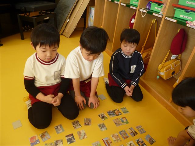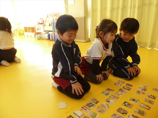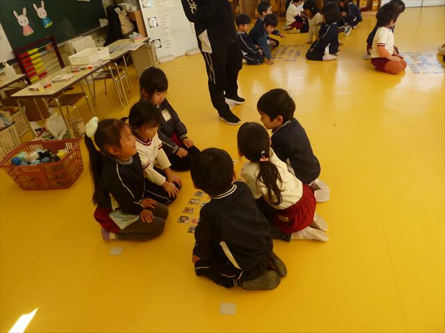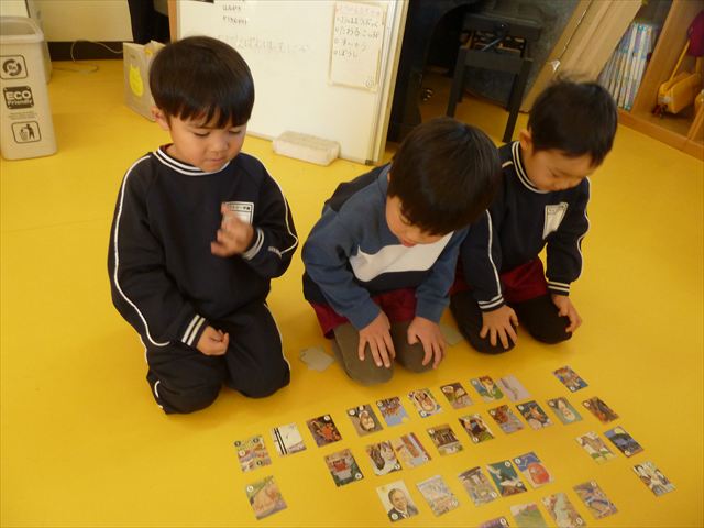 運動教室の後は、上毛かるたをしました。札も覚えてきていて、ルールも守り楽しく行えました。上毛かるた大会に向けて頑張ります!
