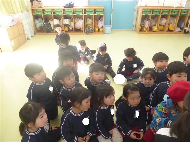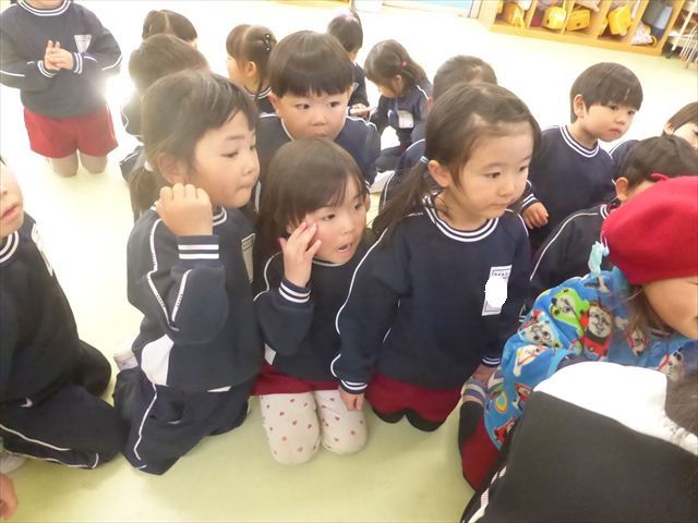 午後は、満2歳児さんがともえ先生のリトミックをしました♪初めてのお友だちもいましたが、みんなニコニコで楽しそうに参加してくれました!まずは大好きな「おおきく3つ」と新しく「ちいさく3つ」。上手に変身して手をパチパチしていました。その後はウッドブロックのリズムに合わせて、みんなでお部屋をお散歩。音をよく聴いて歩くことができました!そして、「むすんでひらいて」の歌でうさぎ・ちょうちょ・ひこうき・カエルに変身☆まねっこが上手な満2歳児さんです♡ともえ先生、ありがとうございました!