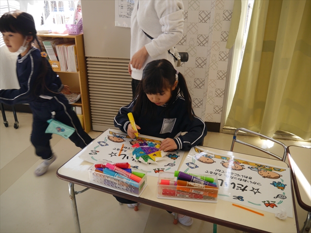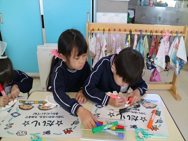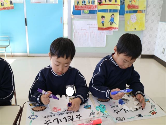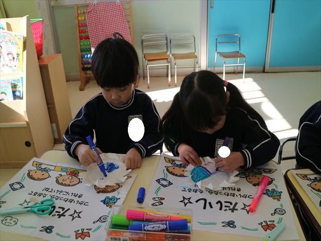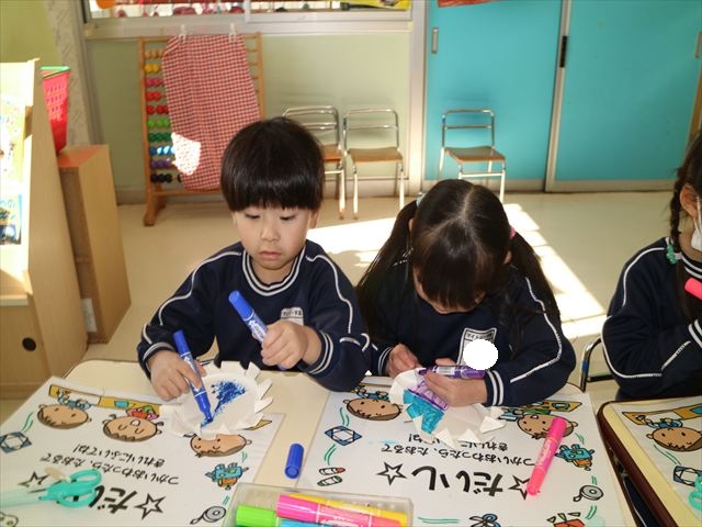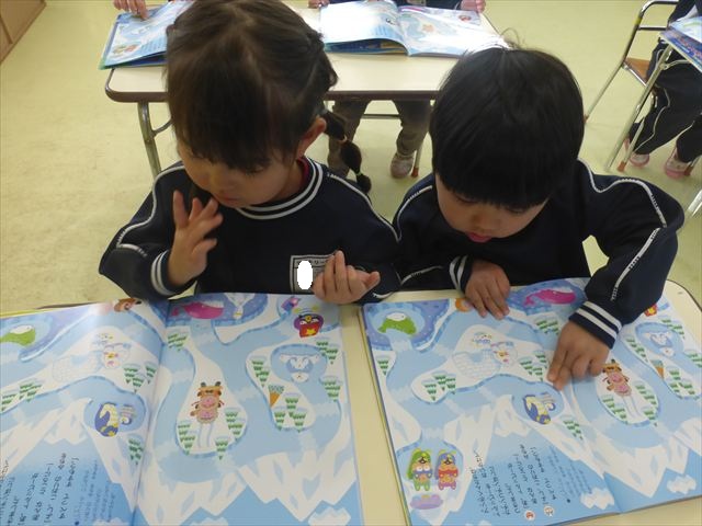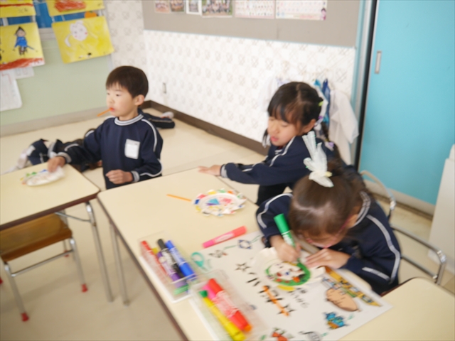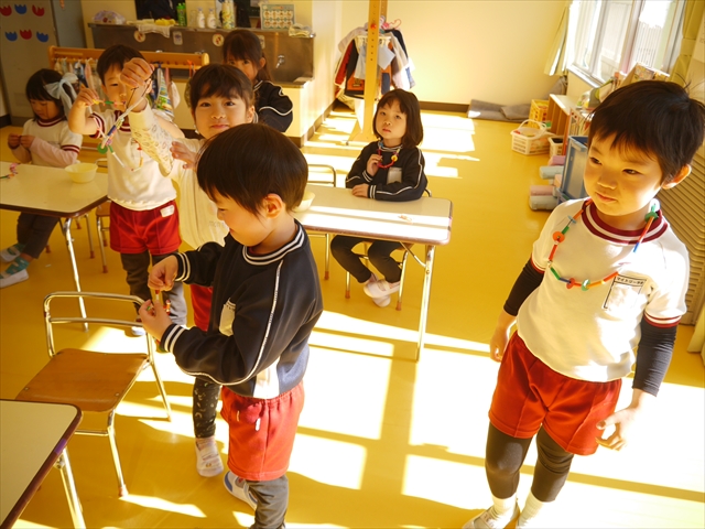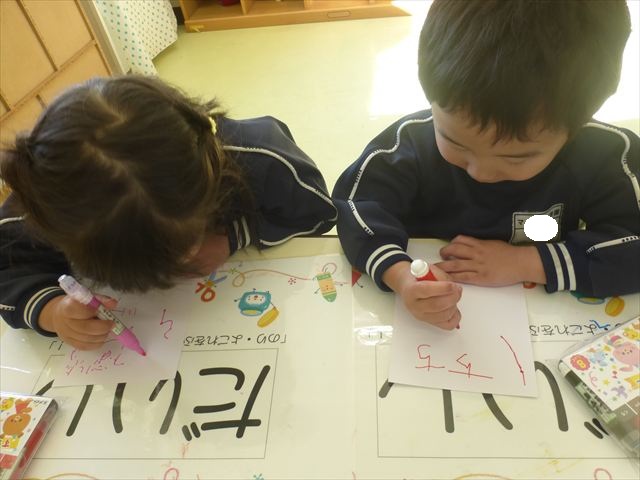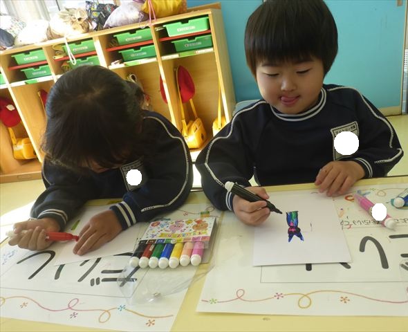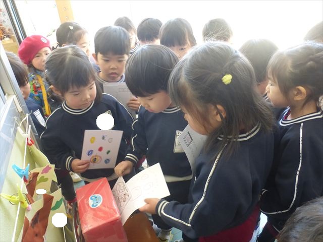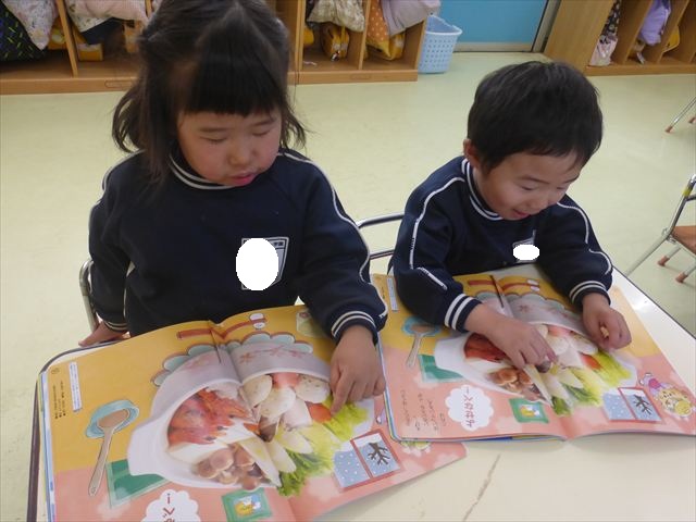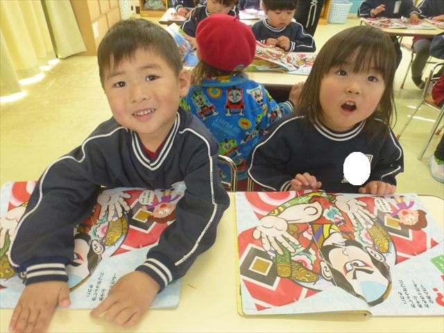 ^^)描いた後は、各教室のポストにお手紙を届けに行きました。午後は、1月の月刊誌を見ました。お正月あそびやお鍋など冬を感じる事が出来ました!(^^)!