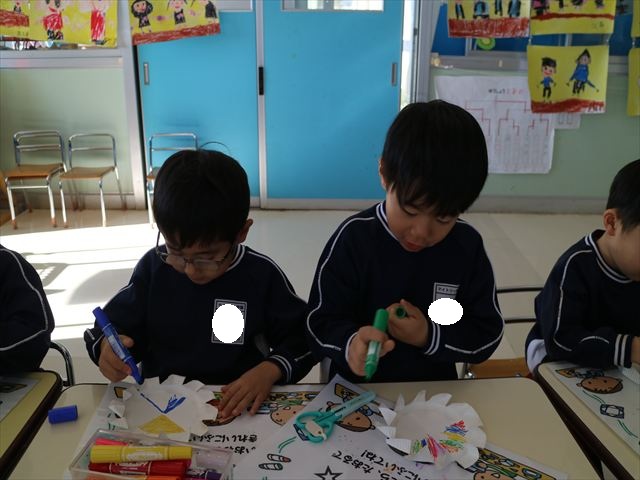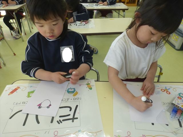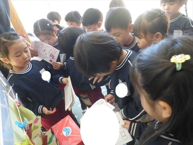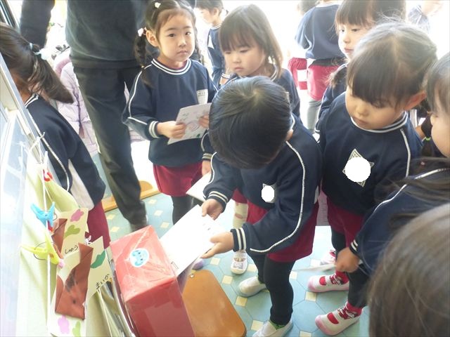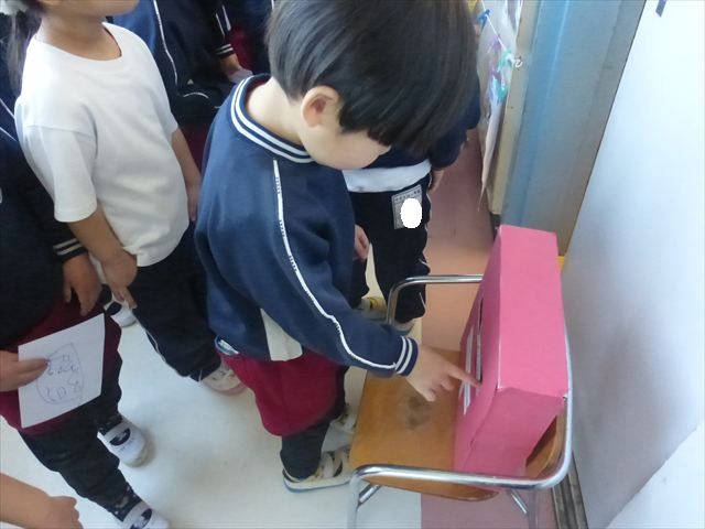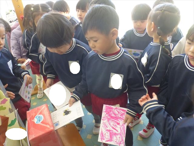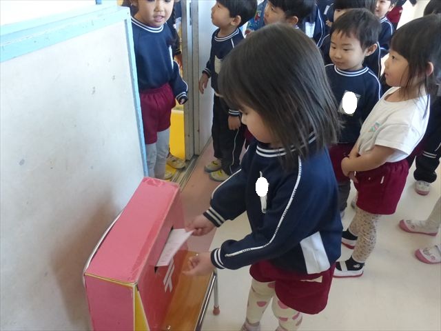 今日は、郵便屋さんごっこをしました。まず、クラスのお友だちにお手紙を描きました。その後は、描きたいお友だちにお手紙を描きました(