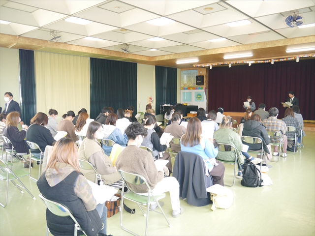 本日午前10時00分から、遊戯室で「新年度の入園・入所説明会」を行いました。お忙しい中、たくさんの保護者の皆さん、お子さんにご出席いただきまして、ありがとうございましたm(_ _)m