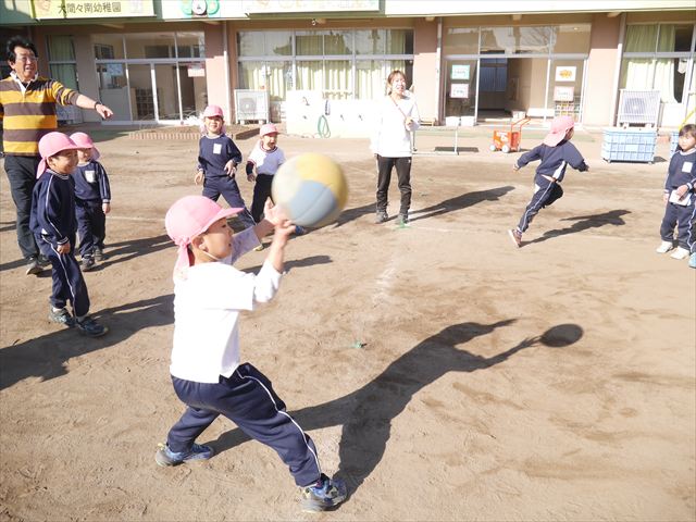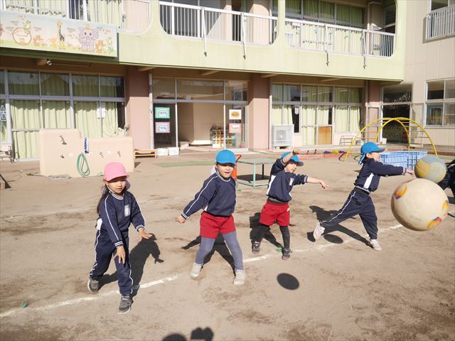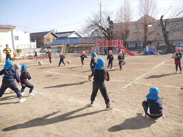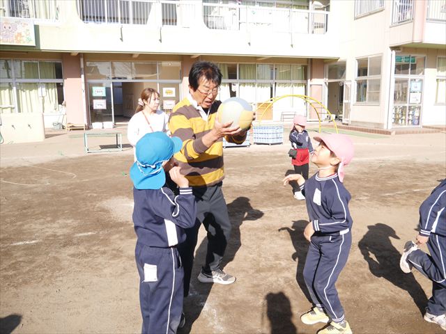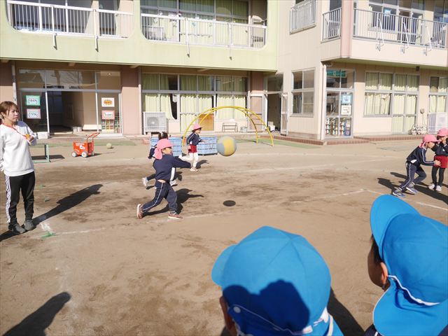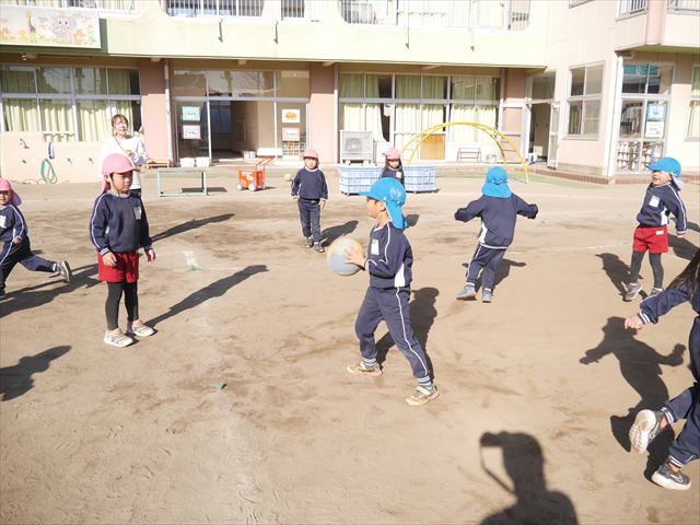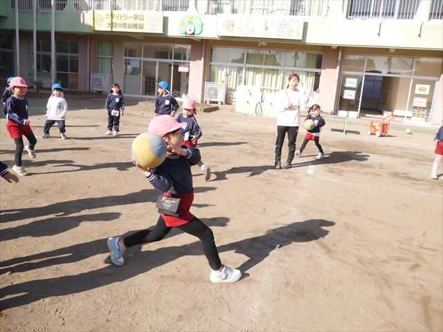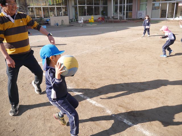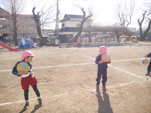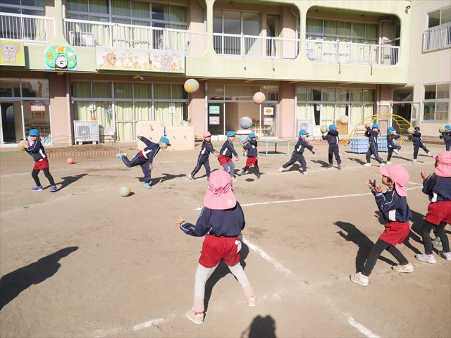 午後は園長先生のドッジボール教室がありました。2月の他園交流のドッジボール大会に向けてみんなで練習をしました。まだ投げる力が弱かったり、ワンバンしてしまったりとなかなか当たらないことが多いですが、少しずつ上手にはなってきています☆