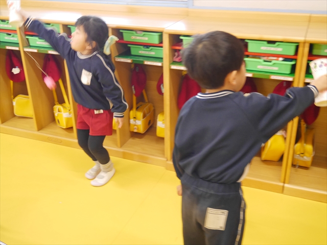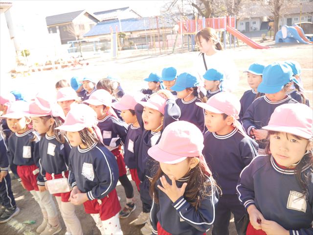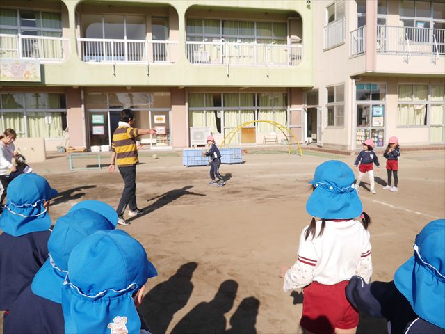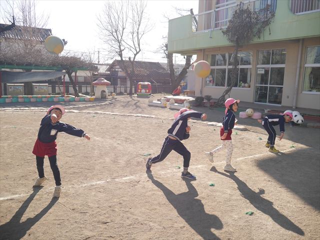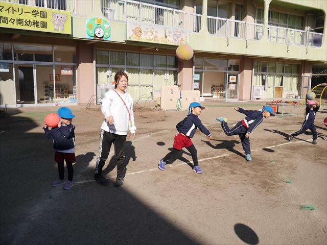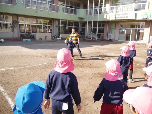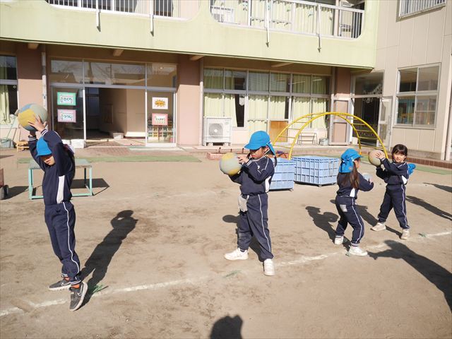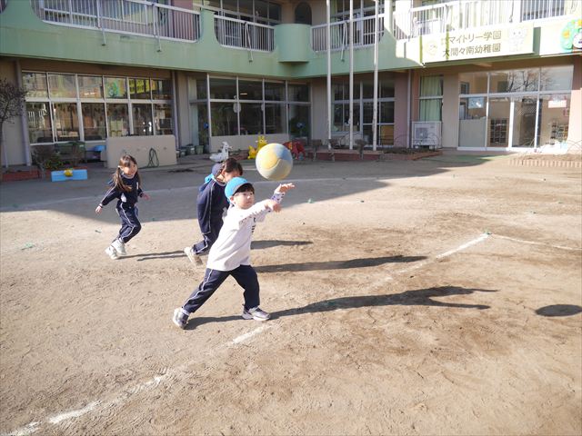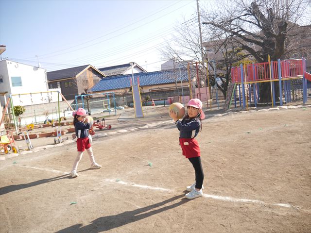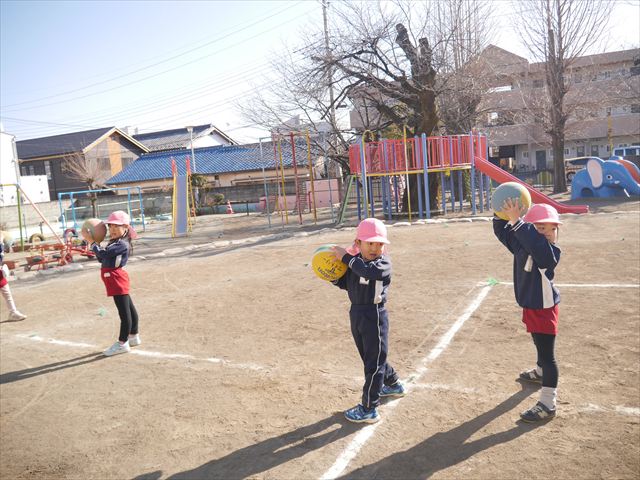 午後は園長先生のドッジボール教室がありました。2月の他園交流のドッジボール大会に向けてみんなで練習をしました。まだ投げる力が弱かったり、ワンバンしてしまったりとなかなか当たらないことが多いですが、少しずつ上手にはなってきています☆