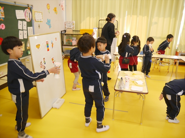 今年度から、新たに月に1回「主体性の時間」(主体的学び・遊びの時間〈室内・戸外〉)のカリキュラムを取り入れました。これは、園児の主体性を重視し、学年・担任が意図したねらい・環境構成の中、子どもたちがやりたい「学び」「遊び」を好きにやる時間です。子どもたちが能動的にその活動を通して学んでいき、自ら考え、【見通し】(何をするのか?何をして遊ぶのか?何を作るのか?)を立て、自ら活動していく力を養っていきたいと思います。