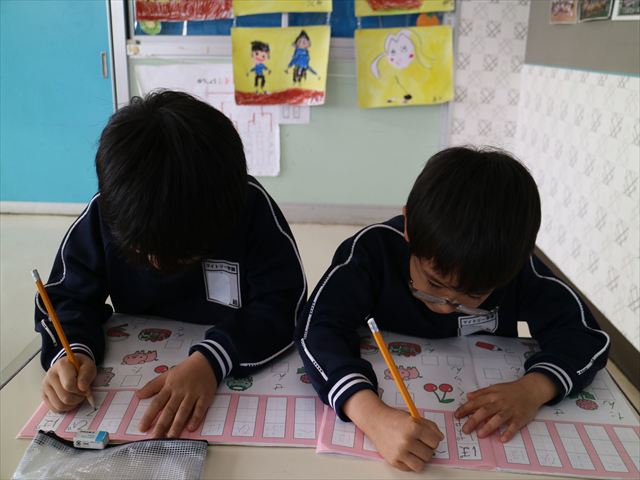 国語の時間としてワークをしました。今回は「ばびぶべぼ」の練習をしました。みんな丁寧に上手に書けるようになりました。