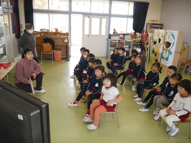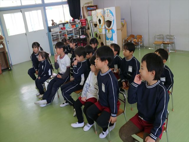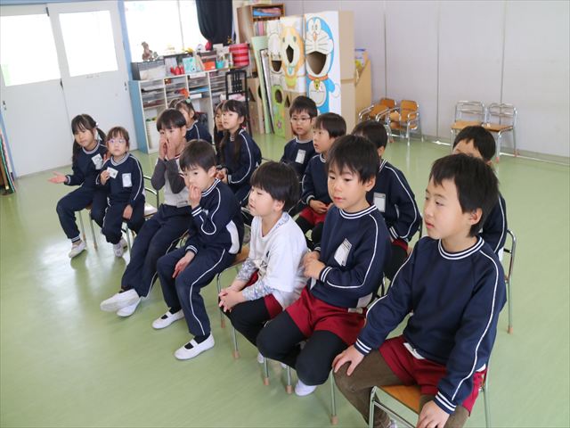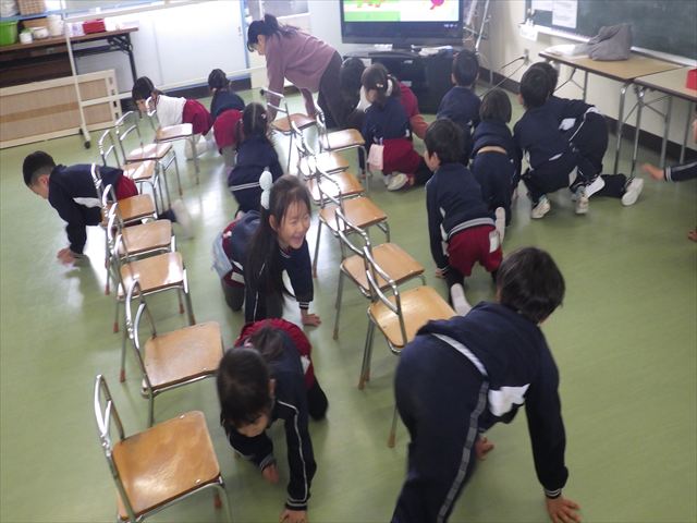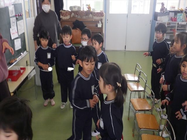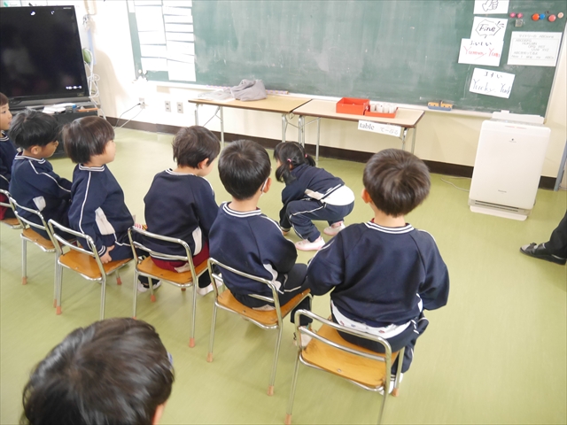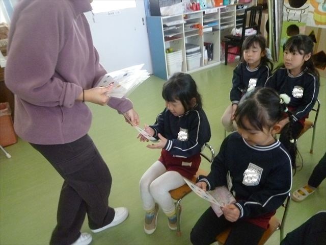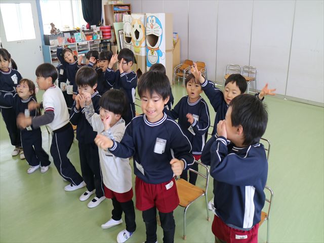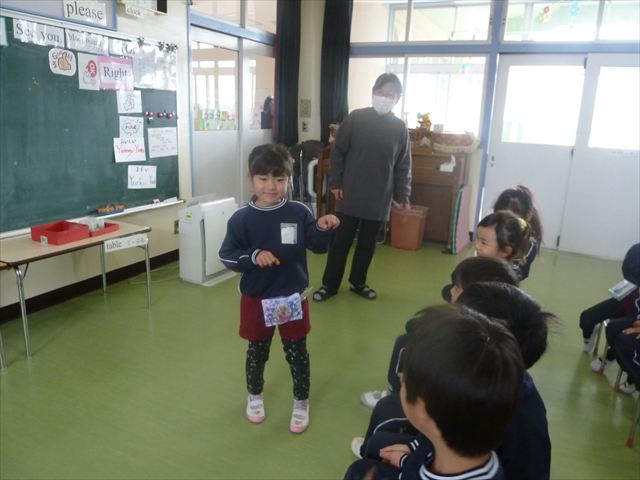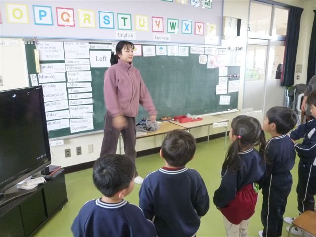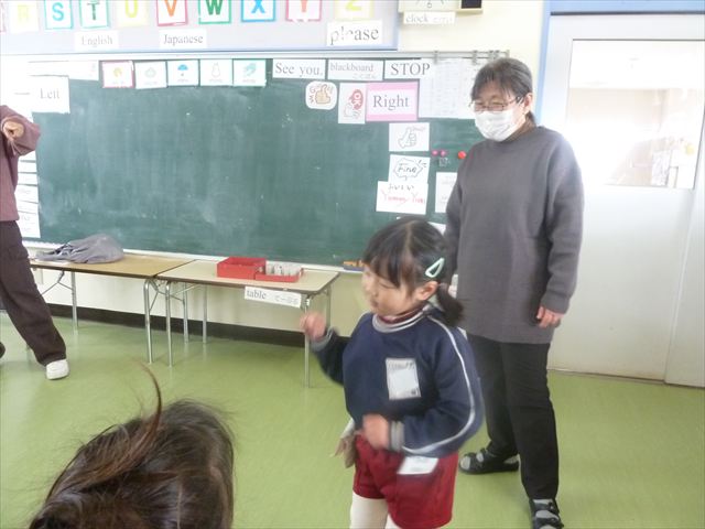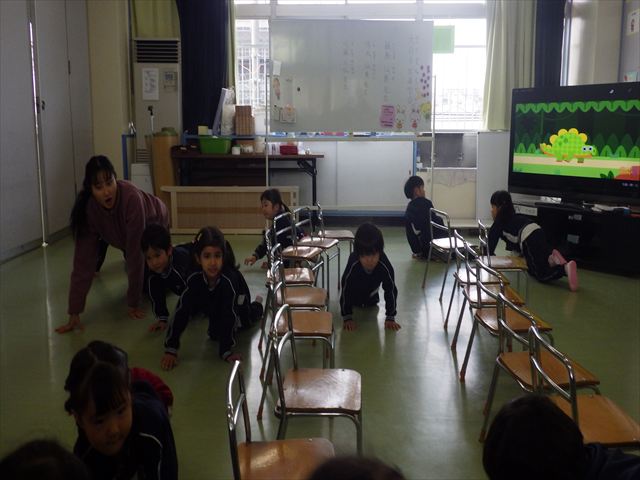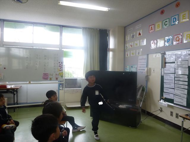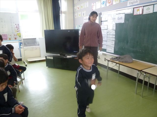 今日は3学期最初のALT英語教室でした。最初にヤナ先生と「Happy new year.」と新年の挨拶をしました。とっても元気に挨拶が出来ました。その後今日はたくさん英語の歌を歌いました。恐竜や、たくさんの動物が出てくる初めての歌もありみんなとても楽しんでいました。難しいかなーと思う英単語も子どもたちは良く発音できていて驚きました。耳で聞いて、一度聞くと覚えてしまうのですね~!