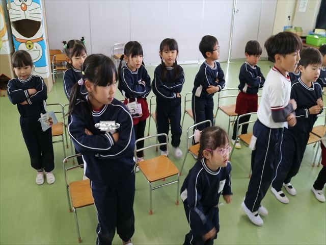 今日は、幼稚園の南側の近隣家屋に火災が発生した想定で「火災対応の避難訓練」を行いました。園舎北側駐車場へ避難するのですが、放送が入るとみんな先生に言われなくても年長さんからたんぽぽさんまで、自分から口を押さえる子が多く、またおしゃべりもせず、しっかり避難することができたので、本当にえらかったです!避難時間も2分58秒と短く、とてもスムーズにできました。子どもたちの成長を感じた「避難訓練」でした!まる!(^_^)b ヘ(^o^)/
