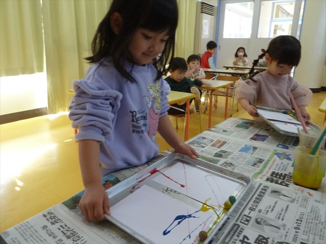 造形活動の時間「絵の具遊び」☆たんぽぽ☆