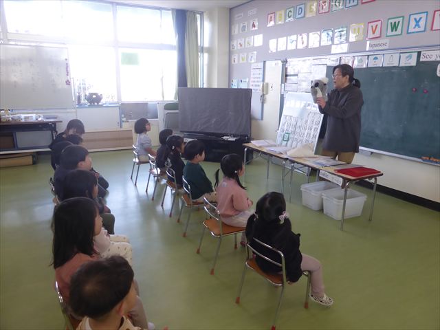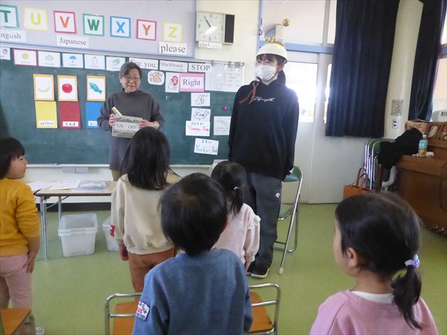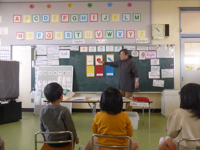 じゃんけんも英語で行い、教室にある物も英語で言ってみたりしました。だんだんと身に付いてきて、楽しみながら取り組むことができました!