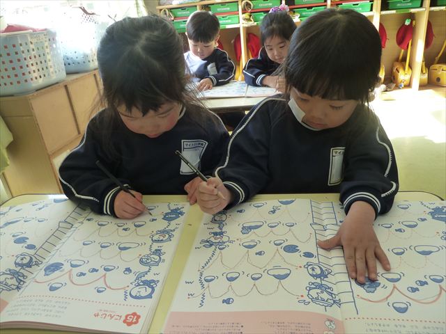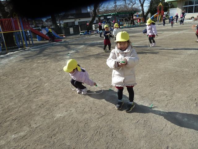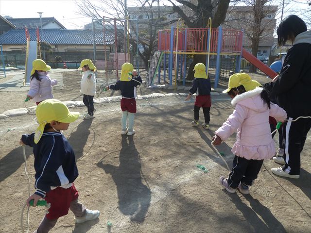体育の時間「なわとび」&せんあそび&上毛カルタ☆年少☆ 2026年1月26日 マイトリー学園大間々南幼稚園 コメントする 今日は、体育の時間として「縄跳び」をしました。連続跳びが出来る子も増えてきました。苦手な子もいますが応援して取り組みたいと思います。今日のせんあそびは「もくもく」の線を描きました。丁寧に取り組める子も増えました。午後は、上毛かるたをしました。得意な子、苦手な子もいますが上毛かるたに触れて楽しみたいと思います。