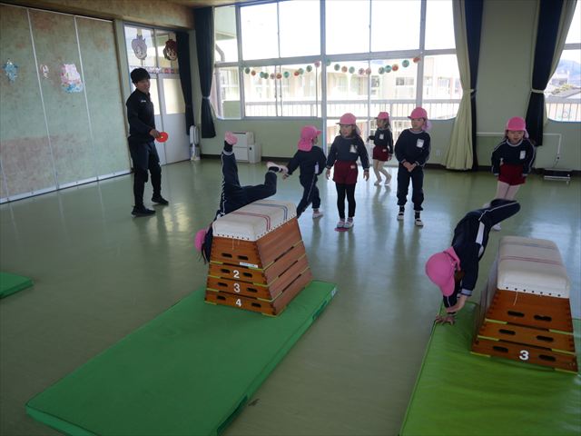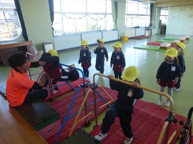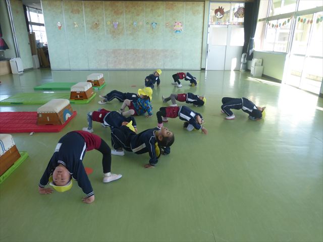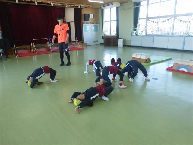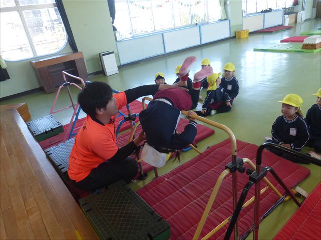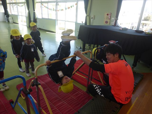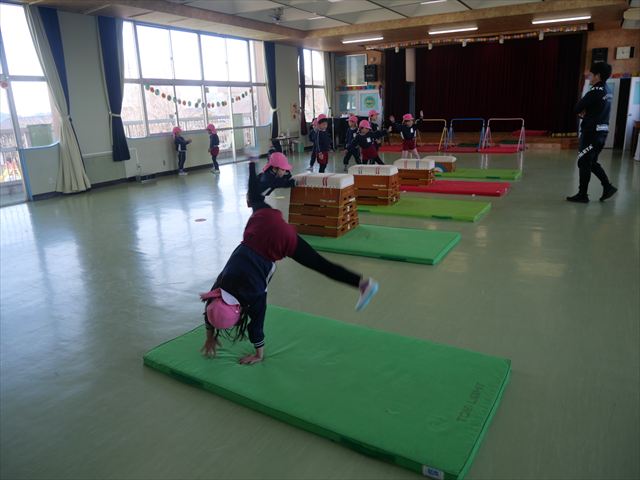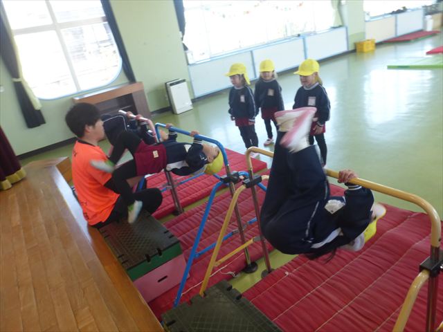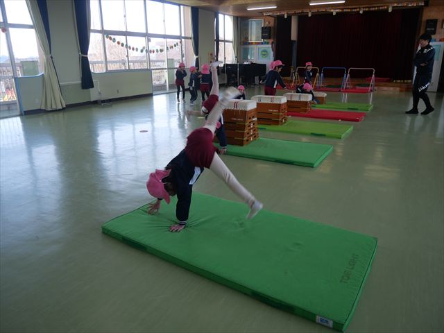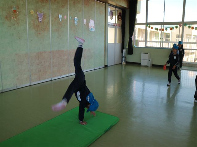 運動教室では、側転・鉄棒・縄跳び・鬼ごっこをしました。出来なかったことが出来るようになる喜びを感じながら練習に励んでいました!