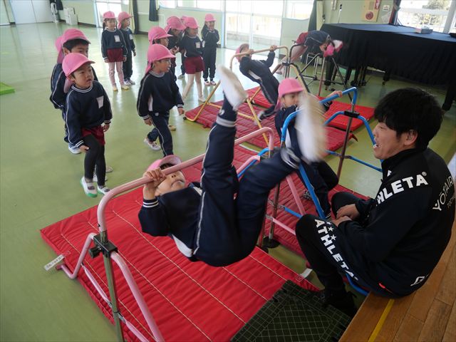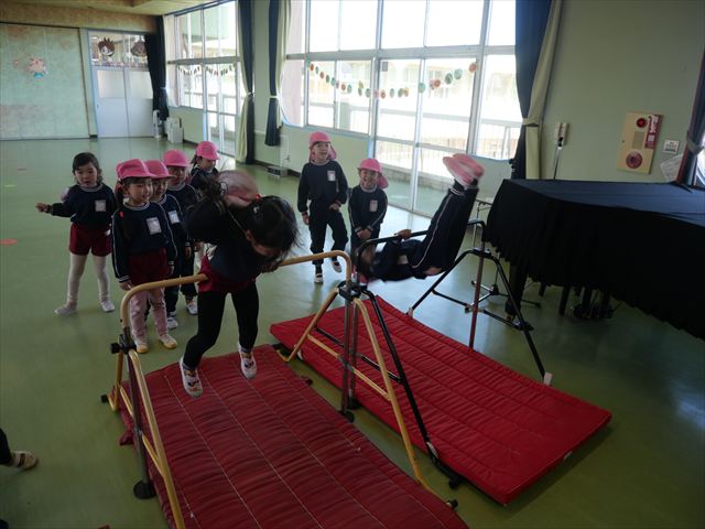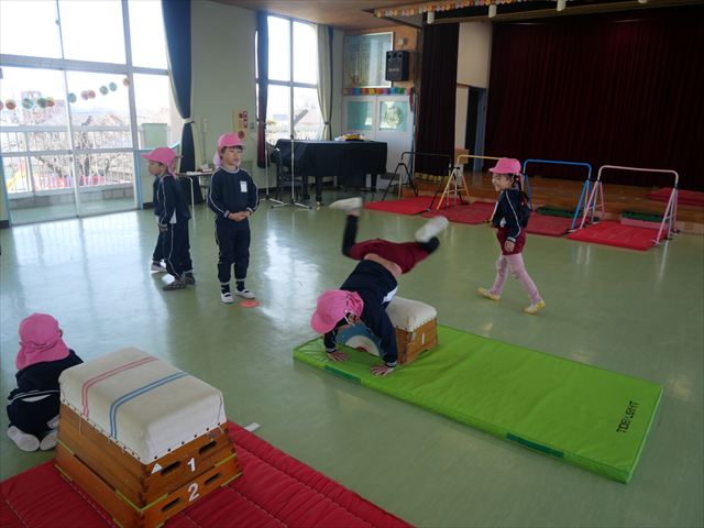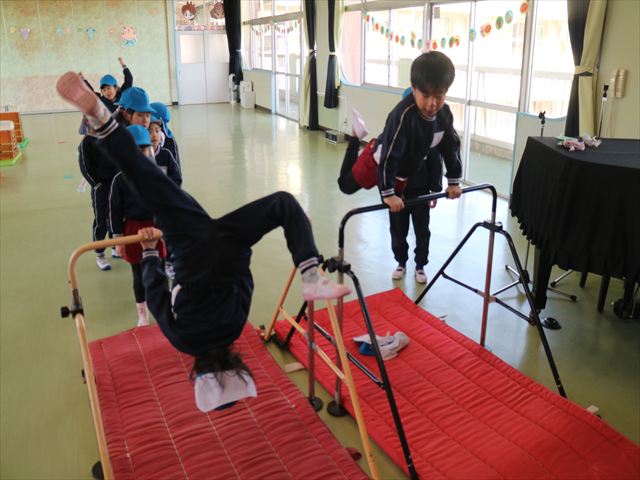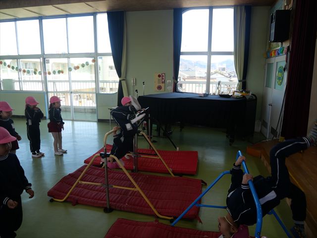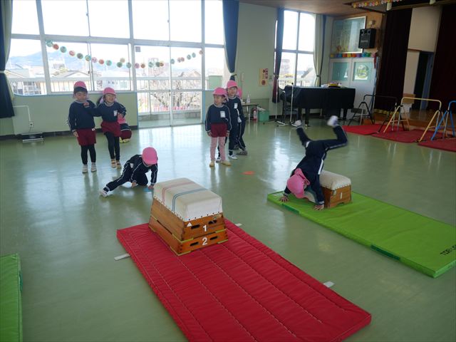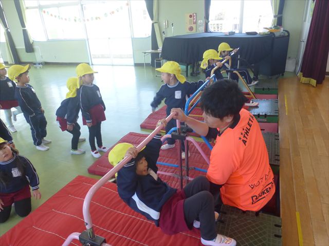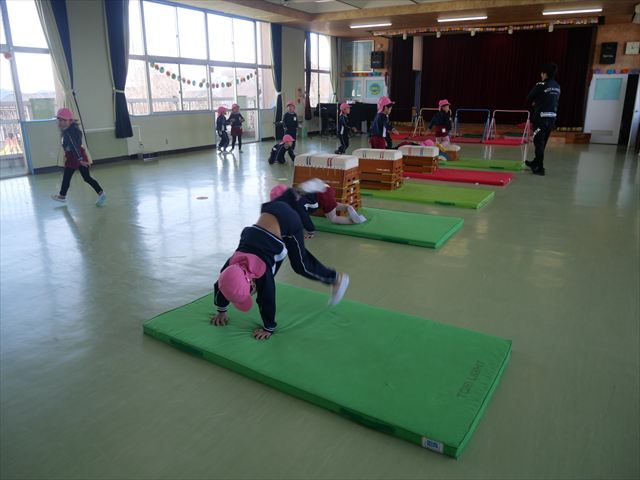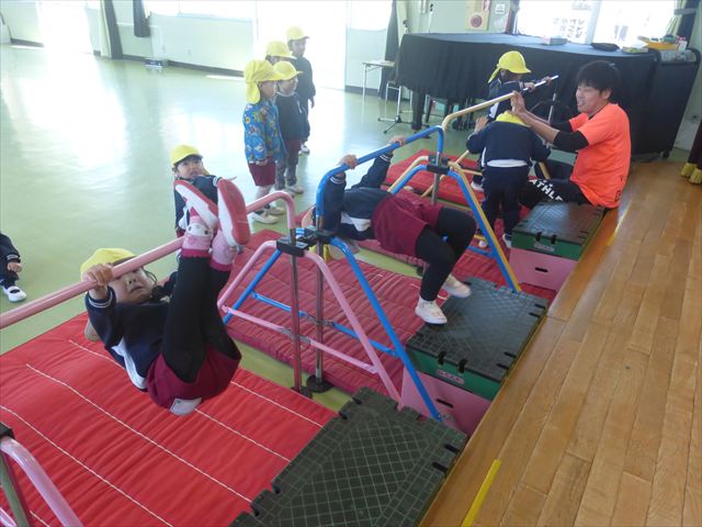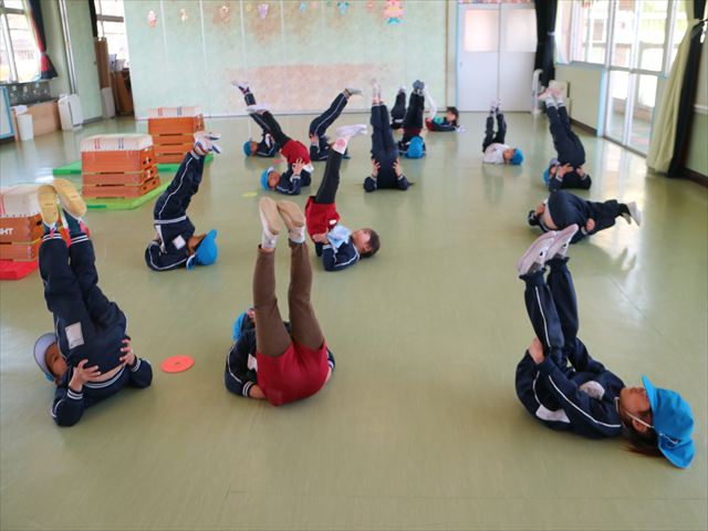 運動教室では、側転・鉄棒・縄跳び・鬼ごっこをしました。出来なかったことが出来るようになる喜びを感じながら練習に励んでいました!