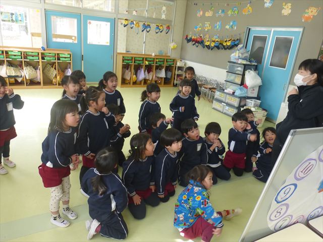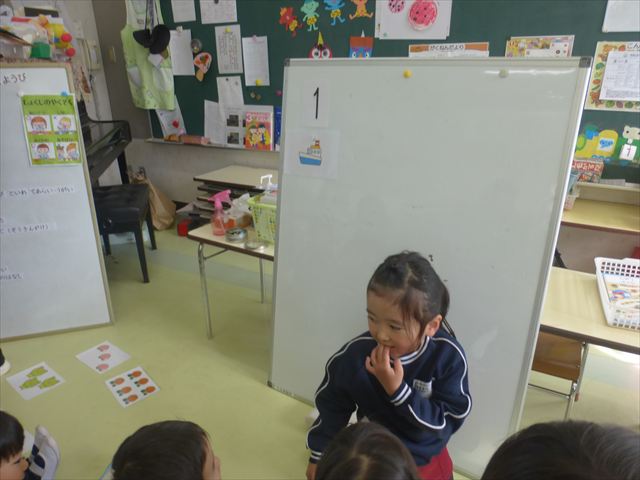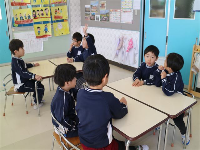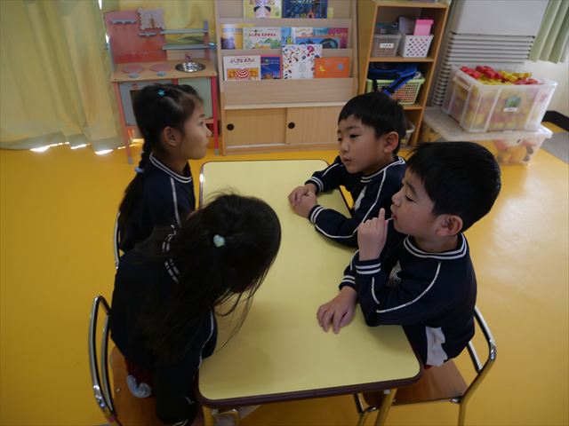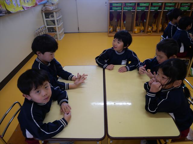 3学期の年長さんの主体性の時間は、「お店屋さんごっこ」に取り組んでいきます。今回は第1回目として「グループ決め・何のお店をするか・どうやって商品を作るか」を友だちと相談して決めました。お店屋さんの説明をするとワクワクとした気持ちでこれからの活動が楽しみなようでした!2月に商品の製作、3月にお店屋さんごっこをしたいと思うので、みんなで楽しんでいきたいと思います☆