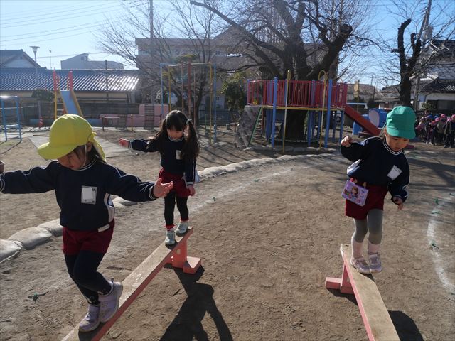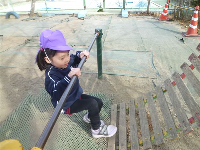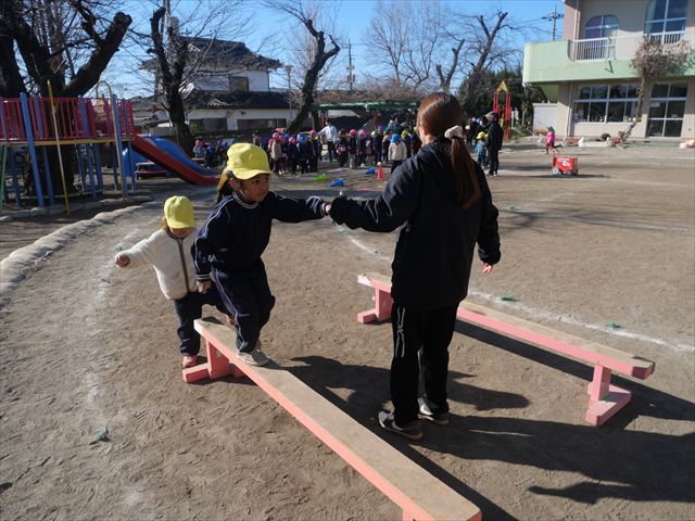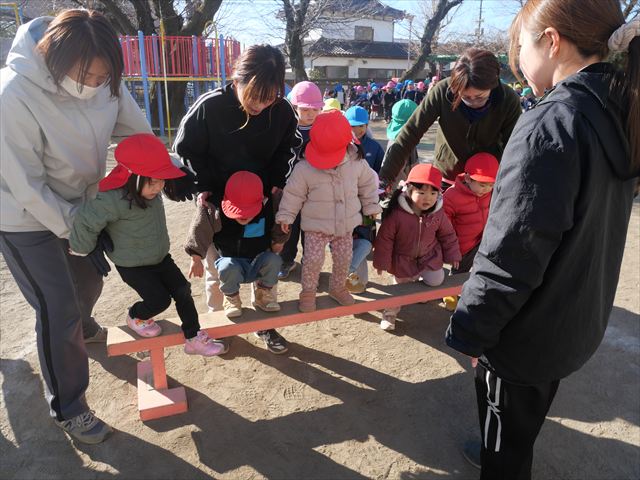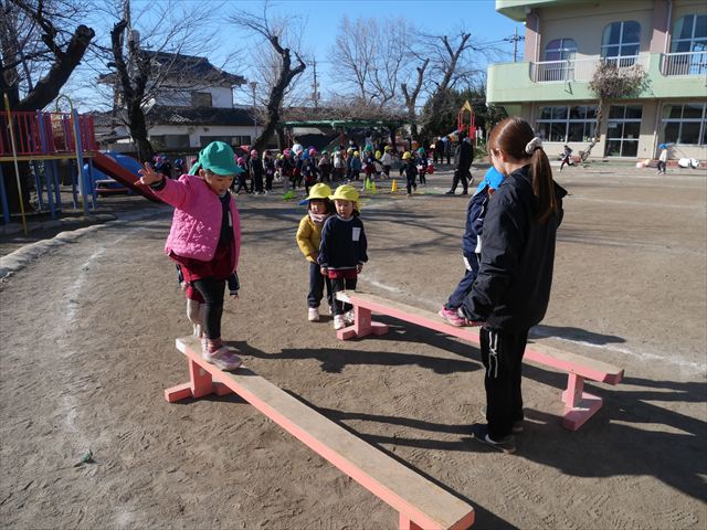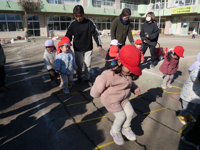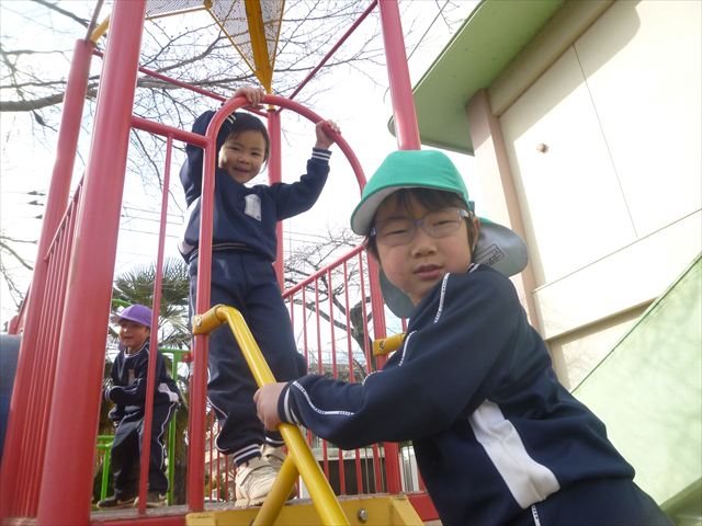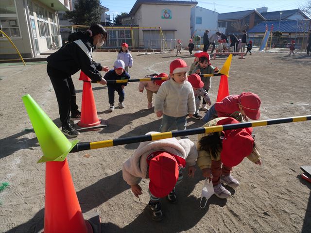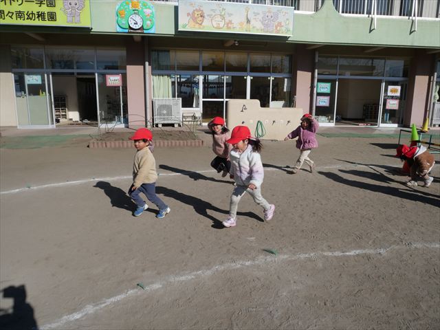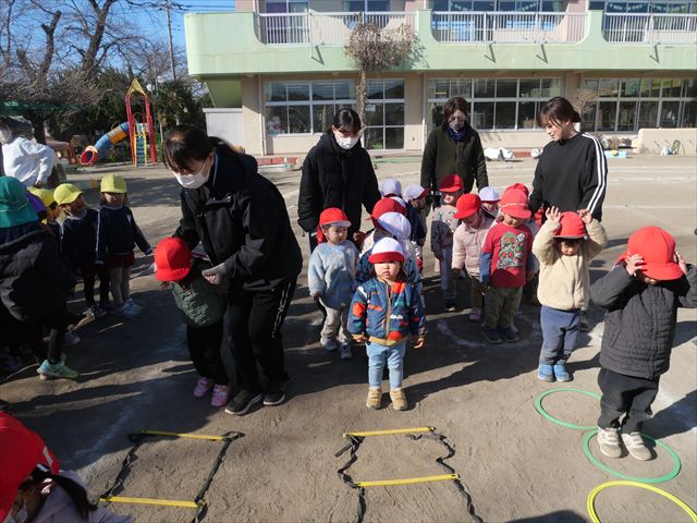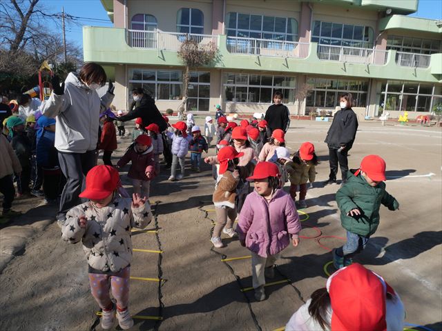 午後は、戸外遊びをしました。安全に遊べるようお約束をした後、園庭にある遊具で自由に遊びました♪また、昨日のドッジボール教室がとても楽しかったようで、コートを引くと「ドッジボールしよう!」「チームはどうする?」など、ワクワクしながら駆け寄る子どもたち。ルールを復習しながらとても楽しそうに遊んでいました☆寒さに負けず元気いっぱいな子どもたちでした!