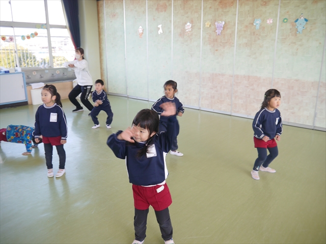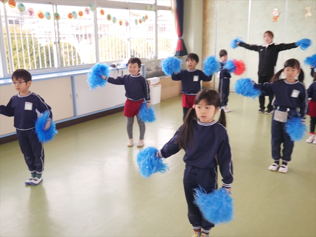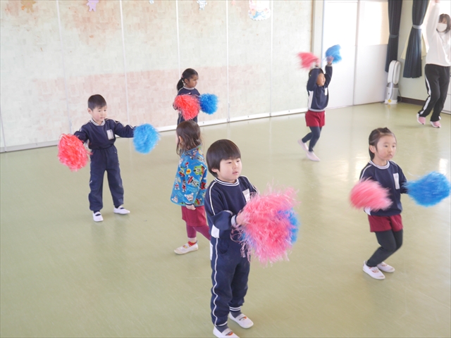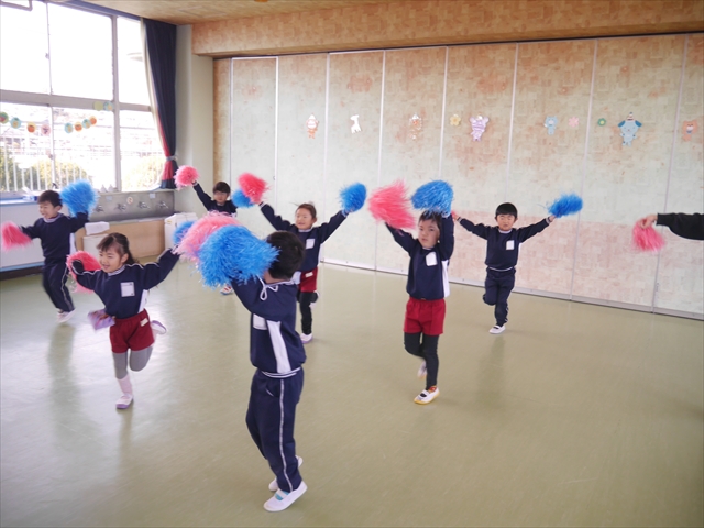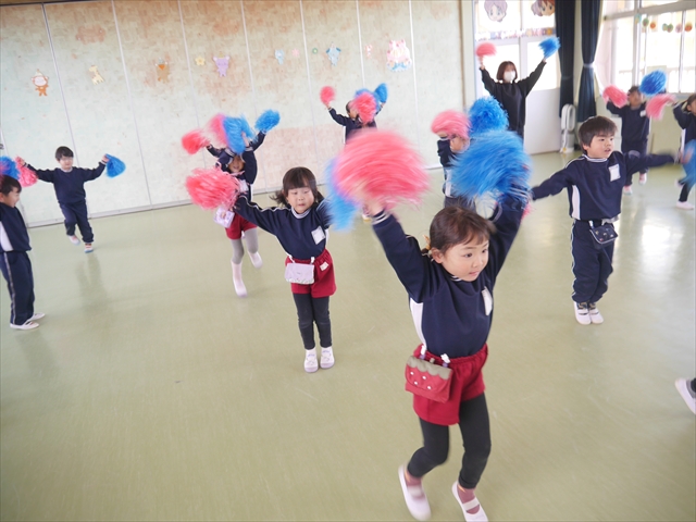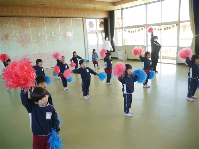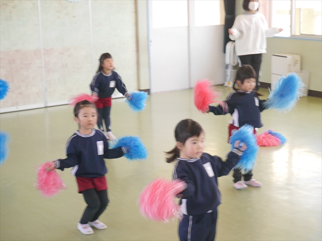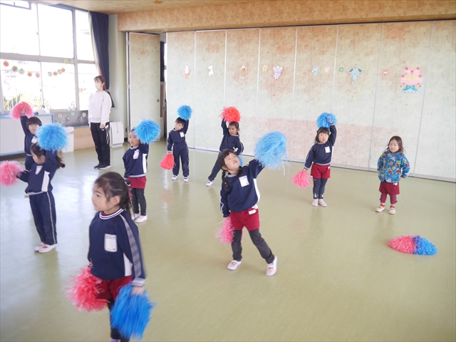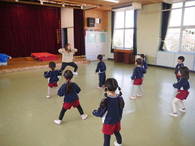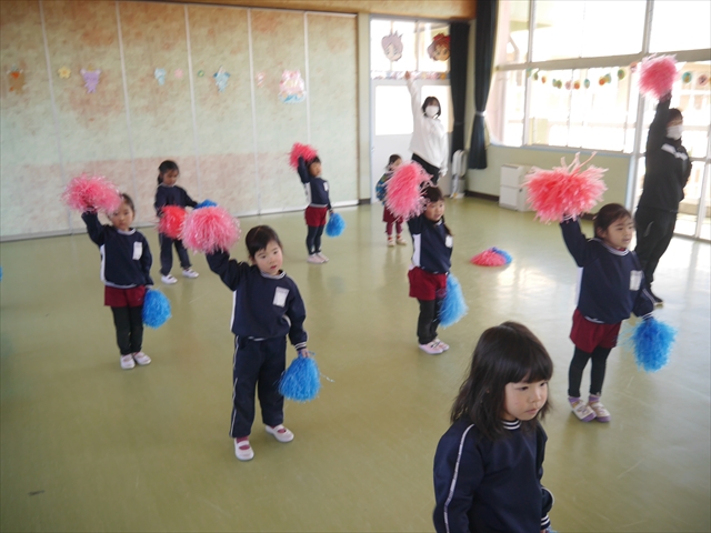 この島倉月弓(まゆみ)先生の「ダンス教室(ヒップホップ、チアダンス)」は、次年度もまた実施し体験したいと思います。また、年少さんたちは「運動会」でも「チアダンス」を発表したいと思います。お楽しみに~!ヘ(^o^)/ (*^_^*)