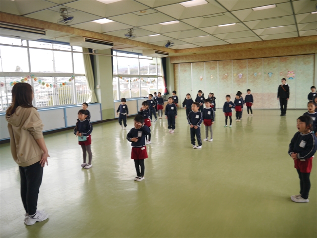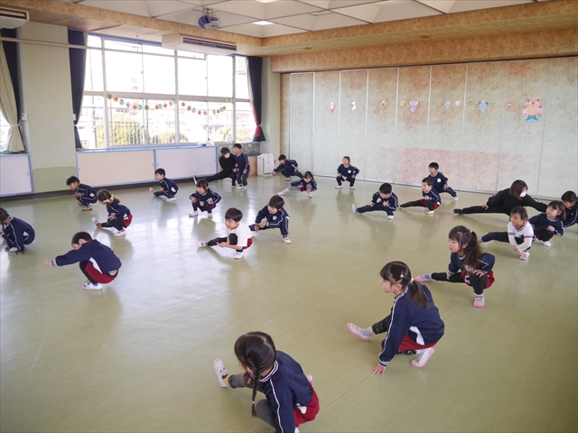 今日は、年少さんから年長さんまでの「ダンス教室」最終回の日でした。「ダンス教室」は、チアダンスの指導者である講師の島倉月弓(まゆみ)先生にお願いし、「チアダンス」や「ヒップホップダンス」を教えていただいているのですが、さすが最終回ともなると、どの学年も覚えている子が多く、子どもたちは楽しみながら様々な動きのあるヒップホップダンスやポンポンを持って笑顔で踊る「チアダンス」を体験しました。まとめとして各学年の動画も撮影しましたので、ご覧いただければと思います。年少さんから学年が上がるごとにどんどんレベルアップしており、さすが年長さんたちは上手でした!とにかくリズム感のある音楽にのって、子どもたちは元気いっぱい踊り、いい汗をかきました。みんな目一杯身体を動かし、楽しんでくれて何よりでした!体力・調整力・リズム感がきっと身に付いたと思います。島倉先生ありがとうございました!m(_ _)m