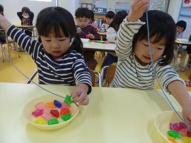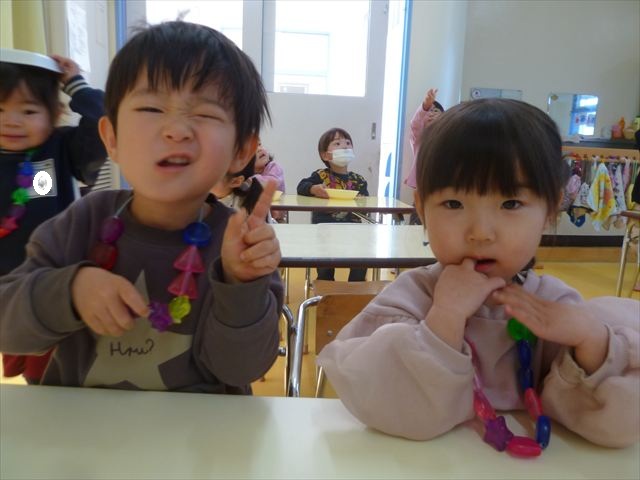 今日の年長さんたちは、大間々北小学校へ「小学校探検(学校見学・授業参観)」と「1年生との交流会」に行ってきました。これは、本園が「町内小学校との連携交流事業・小学校への円滑な接続事業・小学校への架け橋活動」の一環として実施しているものです。また、大間々北小の1年生から「幼稚園との交流会」の依頼がありましたので、そちらも参加してきました。町外の小学校へ就学する子どもたちも多いのですが、小学校は内容がどこもほぼ同じですので、他の小学校へ進学する子どもたちも参考になるかと思います。大間々北小学校では校長先生にご挨拶していただき、1年生の授業を参観させていただきました。その後教頭先生に校舎内を案内していただき、2、3年生の授業や各学年の教室や図書室、放送室などいろいろな教室を見学させていただきました。学校探検の後、「小学校1年生との交流会」に参加し、1年生が作った楽しい手作りおもちゃで遊ばさせてもらい、楽しい交流を深めることができました。 大間々北小学校の先生方、ありがとうございました!m(_ _)m