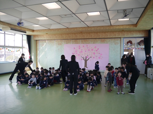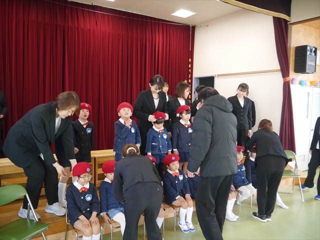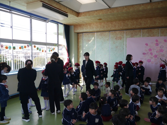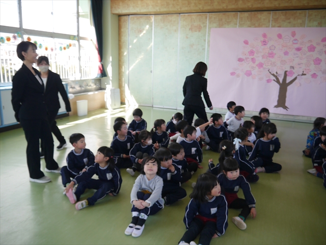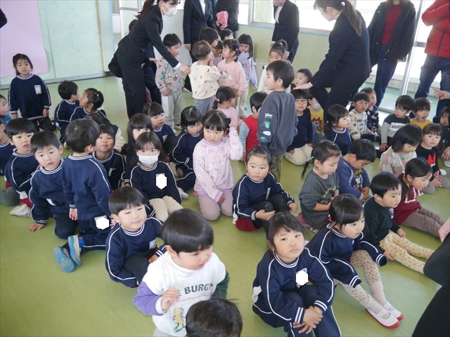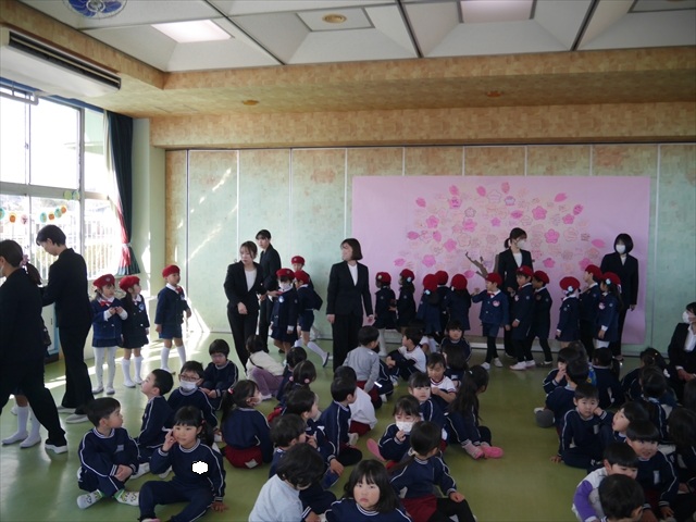 全職員が年長さんと一緒に撮りますし、年中さん以下の園児たちの面倒も見なければなりません。従って全園児・全職員が遊戯室に集合しての大撮影会となりました(^^;) さらに、PTA本部役員さんも子どもたちの面倒を見るために協力していただきました。本部役員さん、ありがとうございました!<(_ _)>まさにマイトリー幼稚園の一大行事の「卒園記念写真撮影」でした!(^_^;) 休みの子も多かったのですが、きっと思い出に残る記念写真が撮れたかと思います。年長保護者の皆さん、できあがりをお楽しみに(*^_^*)