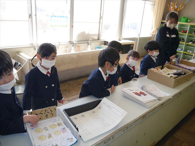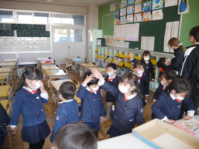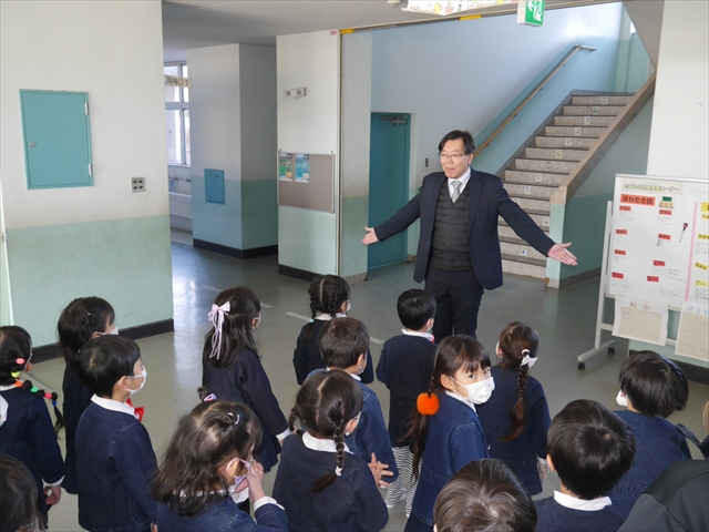 今日の年長さんたちは、「小学校探検(学校見学・授業参観)」の最終回として大間々東小学校へ行ってきました。これは、本園が「町内小学校との連携交流事業・小学校への円滑な接続事業・小学校への架け橋活動」の一環として実施しているものです。大間々町外の小学校へ就学する子どもたちもたくさんいるのですが、その子たちも進学する小学校の参考になるかと思います。