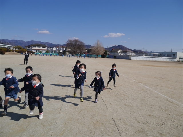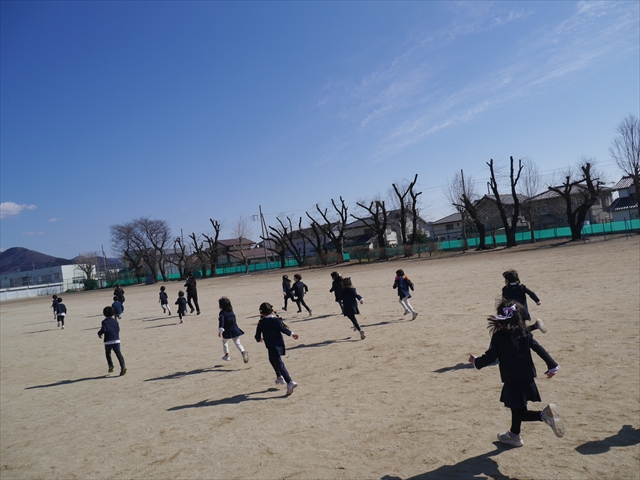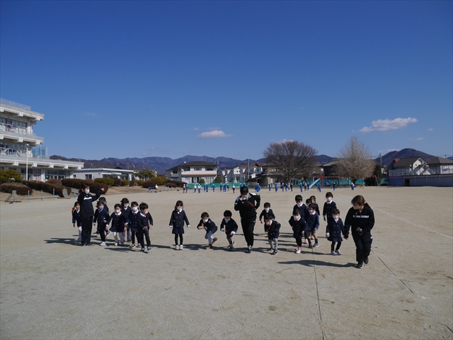 今日は大間々東小学校では校長先生にご挨拶していただき、その後教頭先生に案内していただき、最初に1年生の授業参観をさせていただきました。1クラスは校庭で体育でしたので教室内を見学して説明していただき、もう1クラスは鍵盤ハーモニカを使った音楽の授業でした。みんな真剣に取り組んで頑張っていて子どもたちの模範となりました。(^_^)b そのあと校舎内の各学年の教室や児童の姿、図書室、音楽室などいろいろな教室を見学させていただきました。5,6年の教室を参観した時は、教室の机や児童たちが大きいのでみんなびっくりしていました。マイトリーを卒園していった子どもたちもたくさんいましたが、みんな小学校でたった数年経験したただけで、みんなとても大きくたくましく成長し、頑張っていました!えらい!えらい! 子どもたちの成長は早いですね~!(*^_^*) 学校見学の後、子どもたちが「とても広い校庭なので、遊びた~い!」というので、学校の許可を受けてみんなで「200mトラック1週の競争」をしました。走り終わった後はみんなバテバテでしたが、みんな心地よい汗をかきました!なのできっと給食が美味しかったと思います!(*^-^*) 大間々東小学校の先生方、ありがとうございました!m(_ _)m