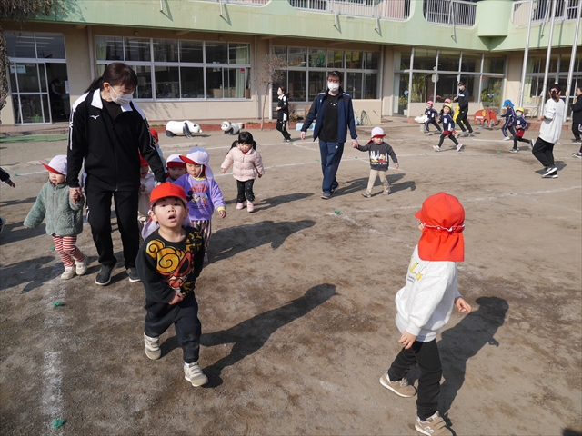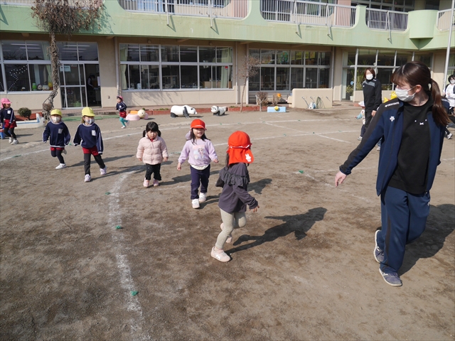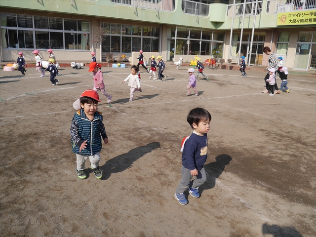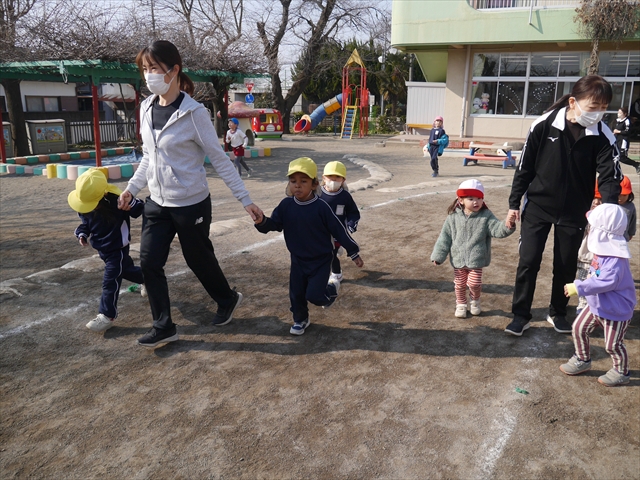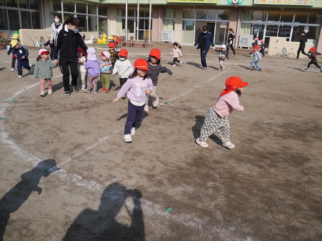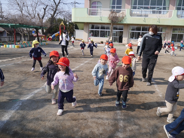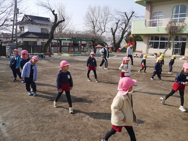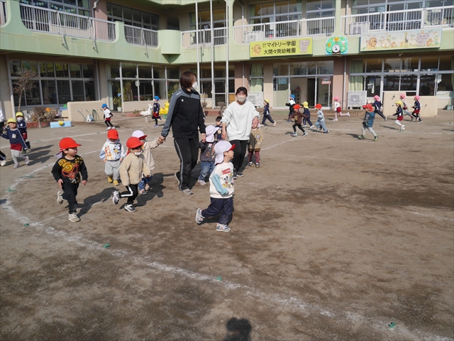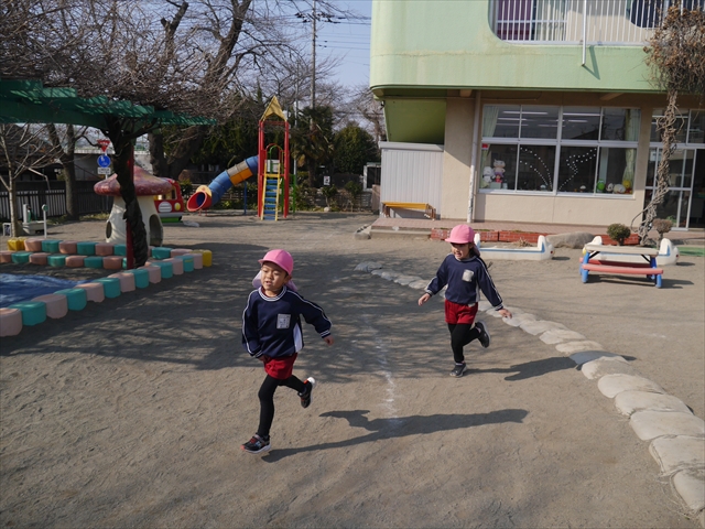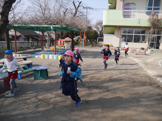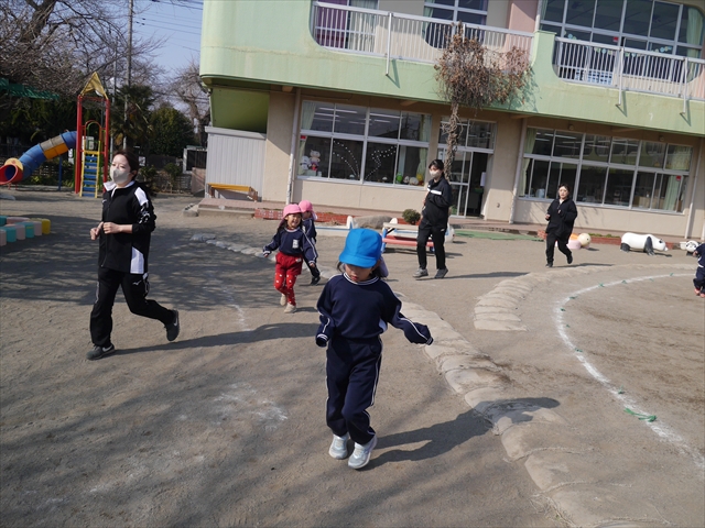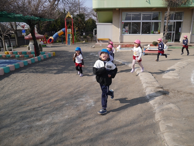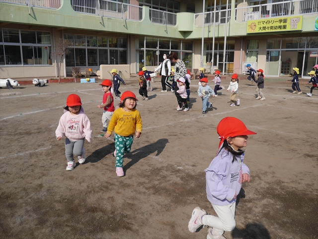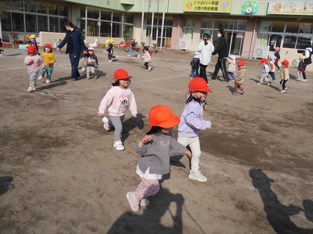 暖かい日差しの中、「朝マラソン」みんな元気いっぱい頑張りました!インフルエンザなんかに負けないぞ~!\(^_^)/ 2026年2月16日 マイトリー学園大間々南幼稚園 コメントする 一昨日から真冬とは思えない暖かい日が続きますが、今日も朝から心地よい日差しが降り注ぎました。そんな暖かい日差しの中、子どもたちは「朝マラソン」を頑張りました。本園ではまだまだインフルエンザが収束していませんが、登園してきた子どもたちは元気いっぱいです。これからもインフルエンザなんかには負けないで、健康で元気いっぱいでいてほしいと思います!ヘ(^o^)/ \(^_^)/